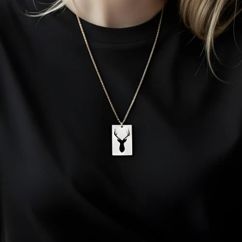 Doğanın Gücü ve Asaleti: Geyik Figürlü Dikdörtgen Plaka Kolye