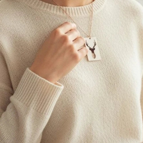 Modern Geometrik Kesim: Lazer kesim ile şekillendirilmiş geyik figürü, kolyeye derinlik ve modern bir hava katarı.